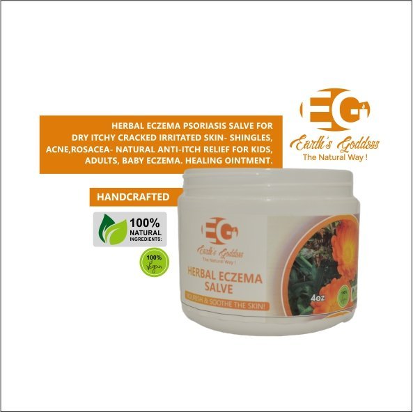 Earth’s Goddess Herbal Eczema Salve is a vegan, clean, all-natural product to manage eczema and psoriasis relief.